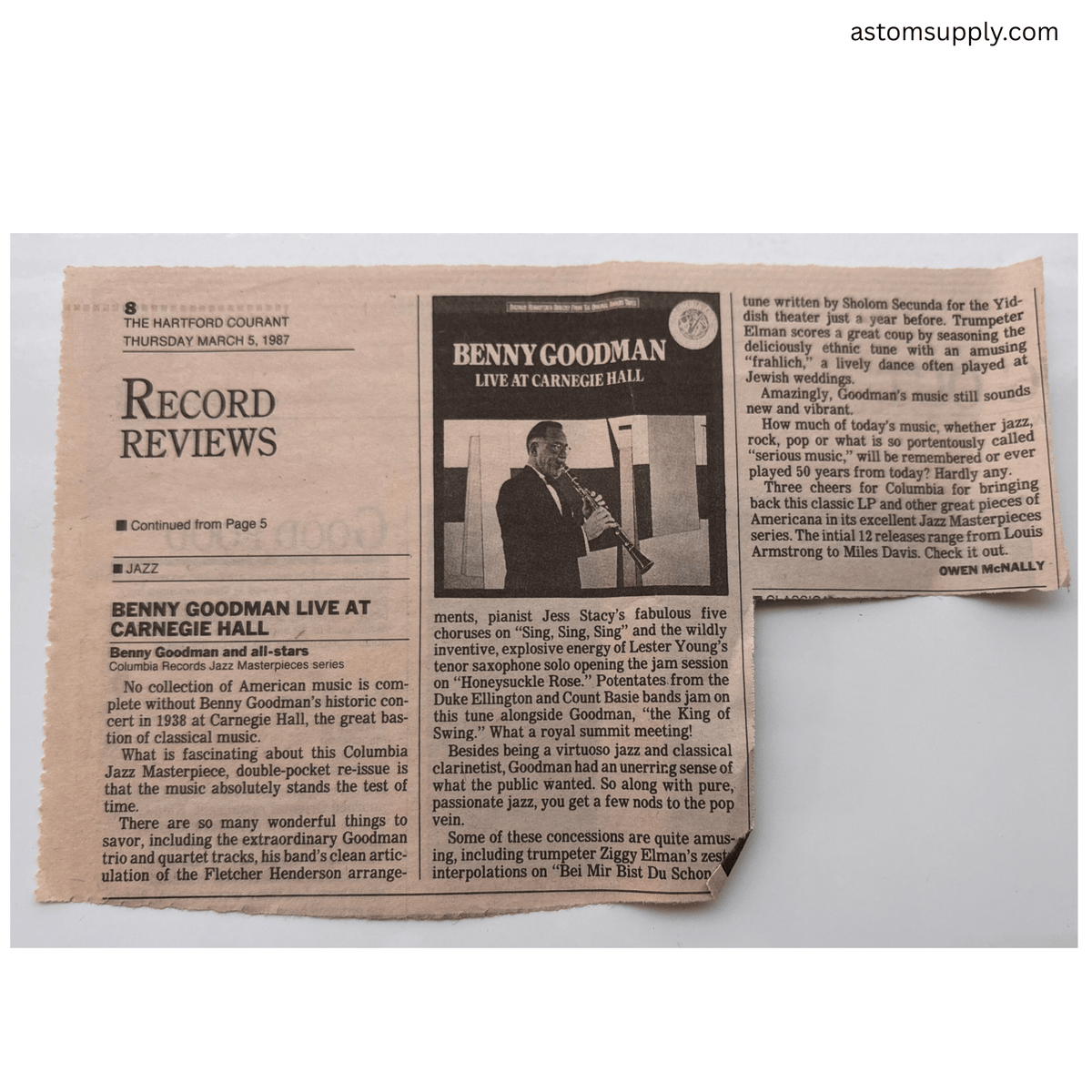 Original newspaper review clipping (as shown in photos)