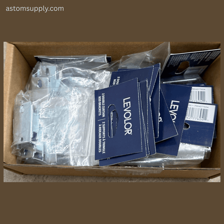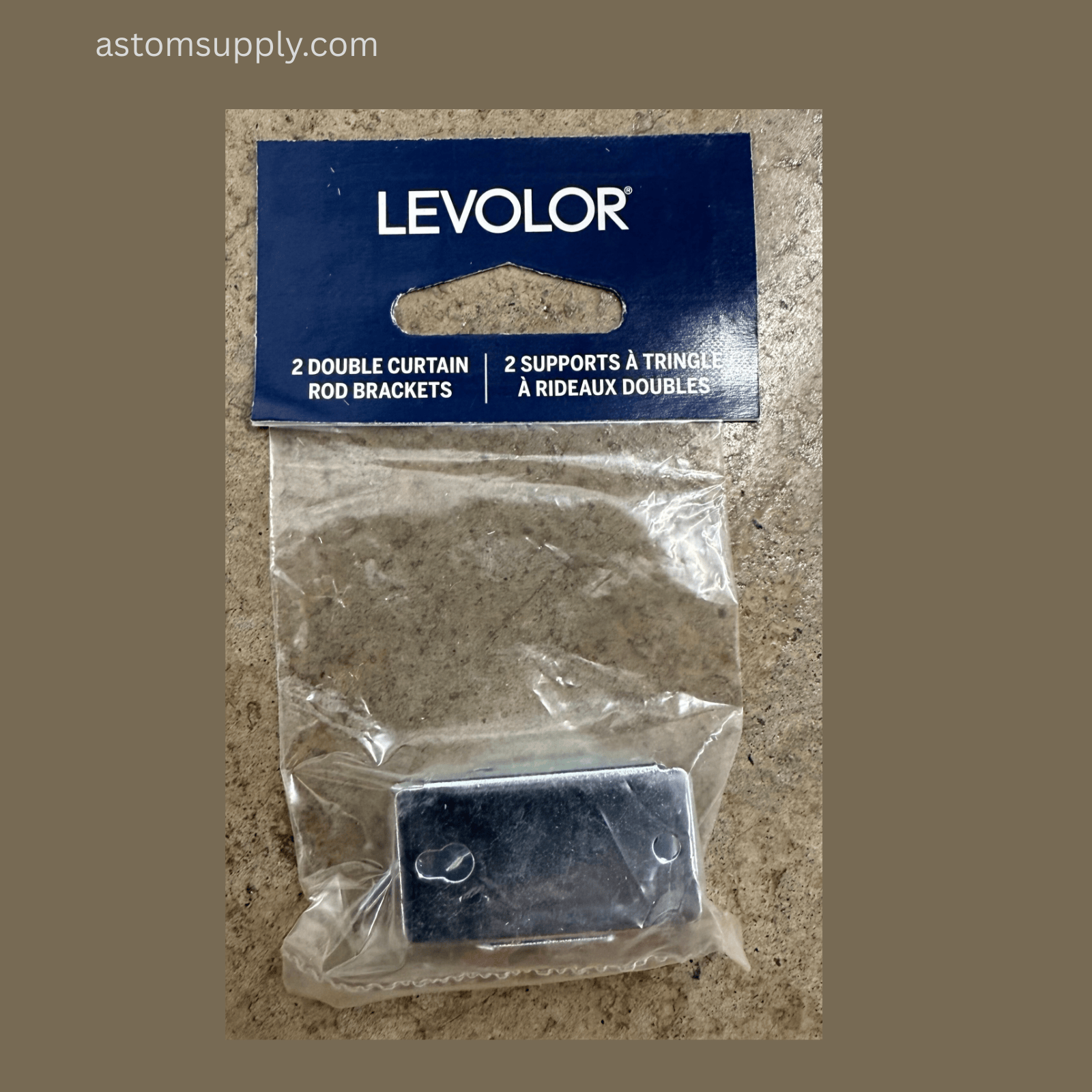 - One bulk box containing 25 factory-sealed packs of Levolor Double Curtain Rod Brackets.